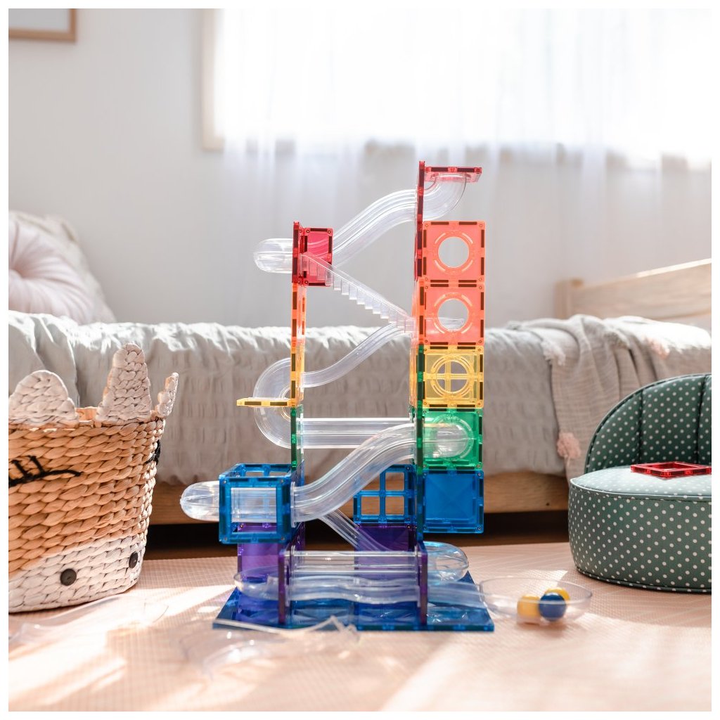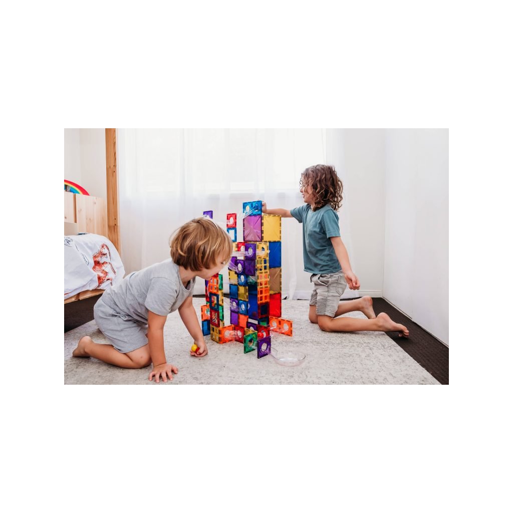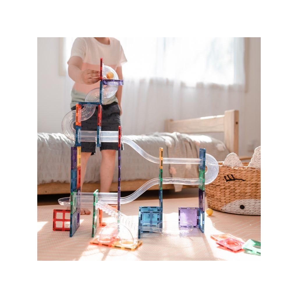 Tato stavebnice je ideální pro děti od 3 let, které chtějí objevovat svět magnetických staveb a kuličkových drah. Díky kvalitnímu zpracování a bezpečným materiálům poskytuje hodiny kreativní a vzdělávací zábavy.