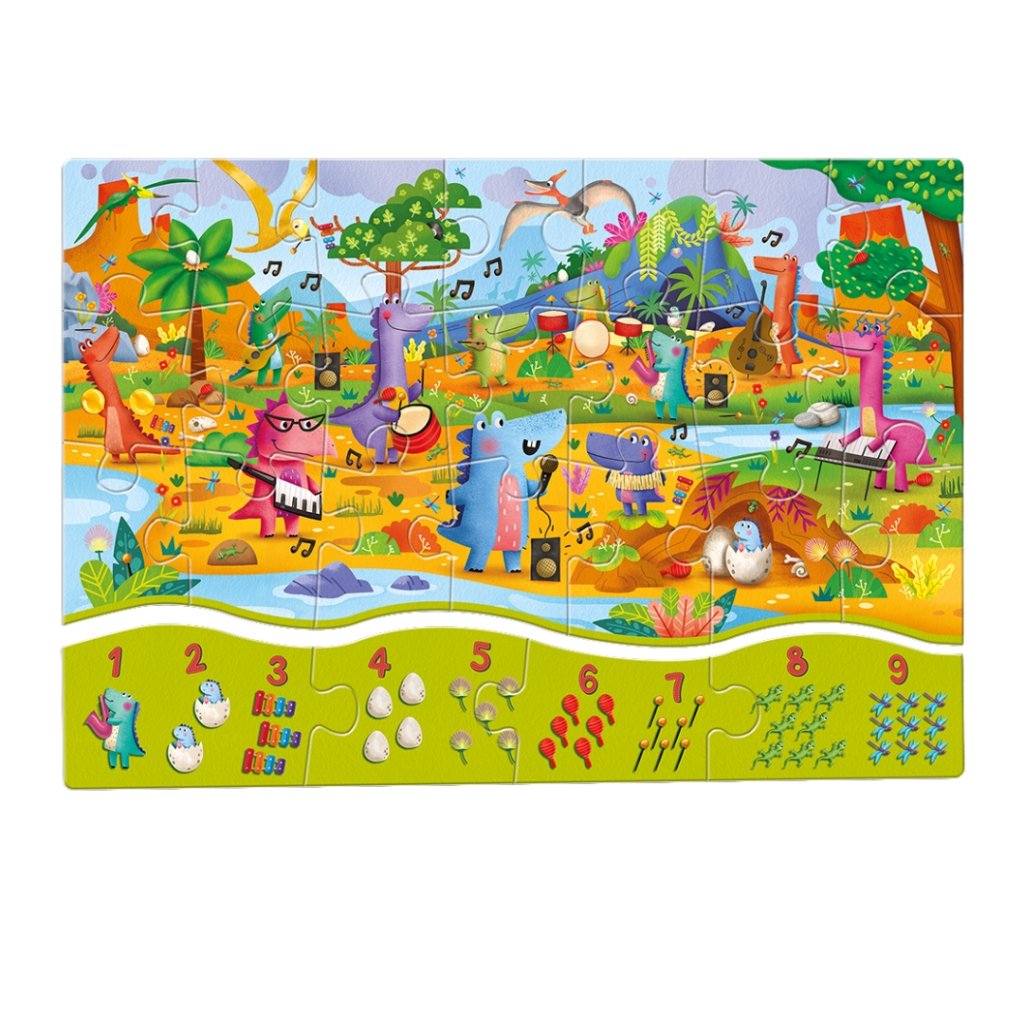 Po složení obrázku mohou zkoumat čísla od 1 do 9, počítat předměty a hledat jejich odpovídající množství v ilustraci.