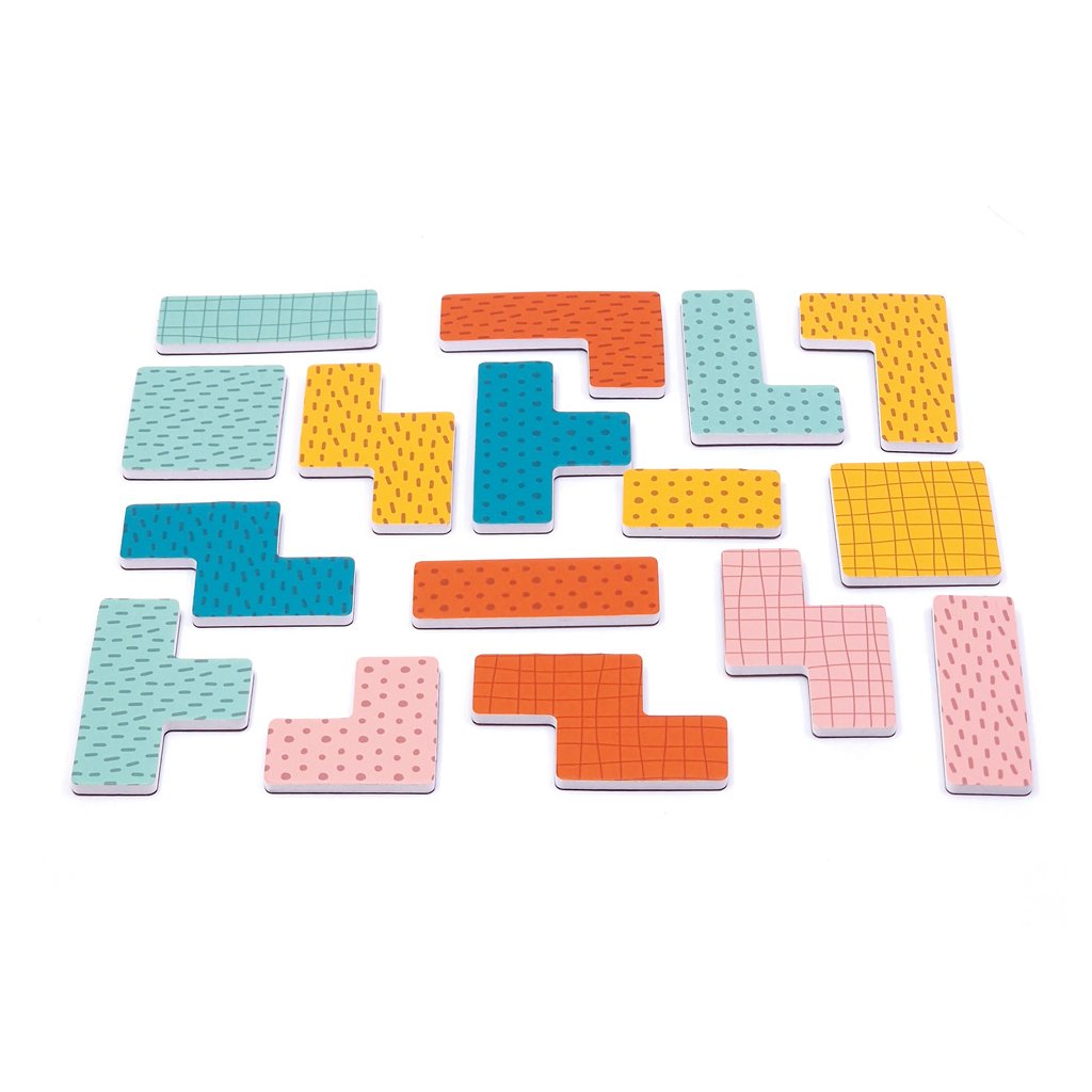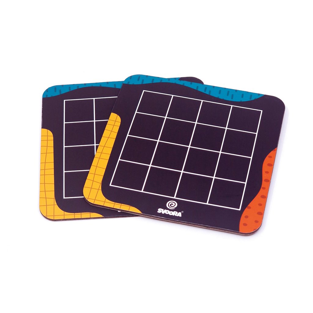 Hra obsahuje 2 magnetické hrací desky, 30 magnetických dílků a 80 výzev.